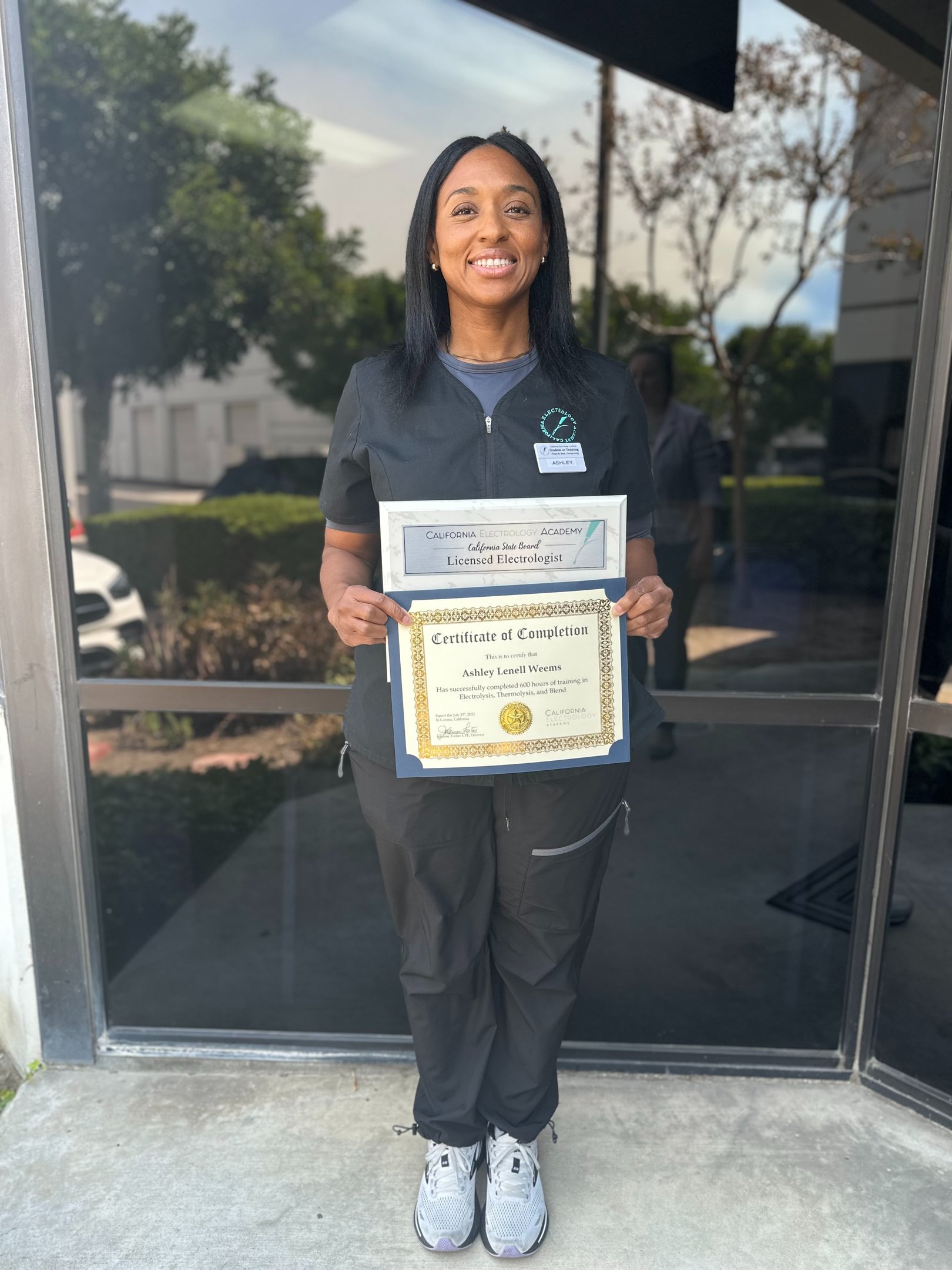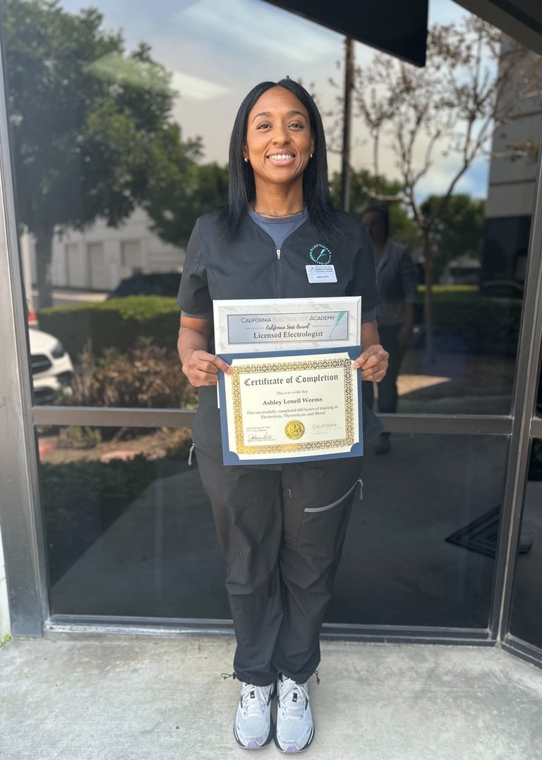 Although I’m new to the field of electrology, I bring a lifelong passion for biological sciences and natural and holistic approaches to living and personal care. My journey into this field is deeply personal. Like many women, I began to notice unwanted facial hair in my 30s. I turned to laser hair removal only to find that it was not the right match for me, leaving me with hypertrichosis. The increased hair growth led me down a cycle of tweezing and plucking that led to scarring and dark spots I never expected. Eventually, I discovered electrolysis — the only FDA-approved method for permanent hair removal — and booked an appointment. With consistent treatments and a compassionate technician, the hair disappeared… and so did the scars. That experience transformed the way I saw myself, and I knew I wanted to help others experience the same transformation.
